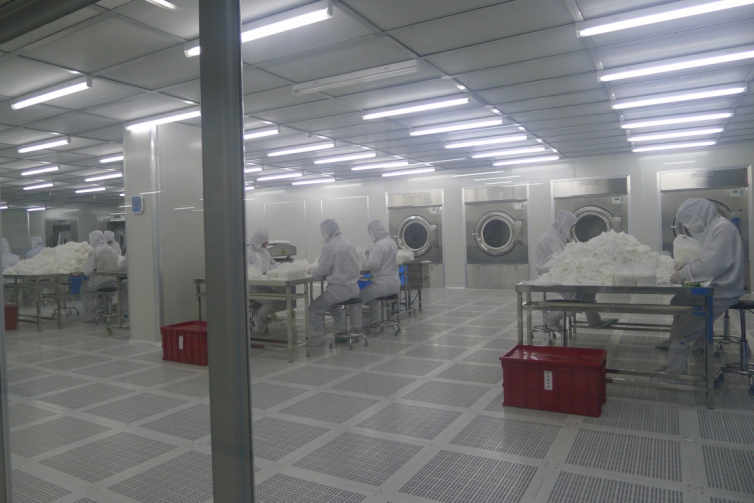 按NEBB ISO 4(原10级)建设和认证的无尘擦拭布生产车间